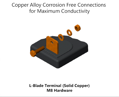 Specifications subject to change without notice. VRLA-AGM Deep Cycle Battery for Off Grid and Grid Tied Systems. Recombinant gas Sun Xtender® Series solar batteries are low resistance, valve regulated lead acid (VRLA) batteries. Since 1987, Sun Xtender has been designing valve regulated lead acid batteries with AGM construction (VRLA-AGM).The AGM construction means no water replenishment ever. Utilizing pure lead calcium grids, Sun Xtender deep cycle battery plates are thicker than the industry standard for longer cycle life, increased reliability and power. The low impedance AGM design allows for excellent charge acceptance and there is no current limit required with controlled voltage charging. The Sun Xtender battery product line features proprietary PolyGuard® Microporous Polyethylene Separators, shielding the positive plates against shorting, shock or vibration. No other manufacturers offer this dual layer insulation protection feature. Sun Xtender® battery covers and containers are uniquely molded with high impact, reinforced copolymer polypropylene and are designed with thick end walls to prevent bulging. The solid copper L Blade Terminals are corrosion resistant and are supplied with silicon bronze bolts, washers, and nuts. All SunXtender Batteries ship Hazmat Exempt. See the Sun Xtender Battery Technical Manual for details on PVX-2580L applications and specifications. This Sun Xtender solar battery document is also available for download and printing. PVX-2580L is used for applications such as Traffic Arrow / Message Boards, Cathodic Protection, Gried Tied & Off Grid Homes, 2-Way Radio Repeaters, SCADA, Navigational Aids, Medical Refrigeration Clinics & Power for Remote Areas / Developing Nations, Microwave Earth / Satellite Stations, Parking Lot Lighting.